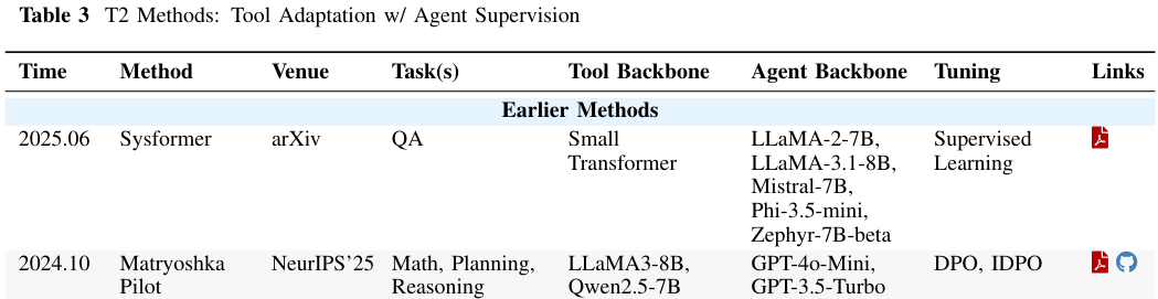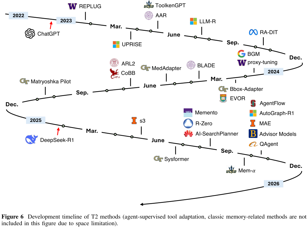 T2象限则是本次综述中最具颠覆性的概念:智能体监督的工具适应。