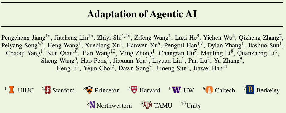 智能体系统的真正爆发点不在于单纯做大模型参数,而在于如何构建一个让大脑与工具相互适应的共生生态。伊利诺伊大学香槟分校、斯坦福大学、普林斯顿大学、哈佛大学、华盛顿大学、加利福尼亚理工学院、伯克利大学等,发布一份学术综述。深入剖析智能体AI(Agentic AI)从单纯的提示工程向复杂的系统性适应演进的内在逻辑,通过一个二维框架彻底理清大模型与外部工具之间的互动机制,揭示从DeepSeek-R1到s3