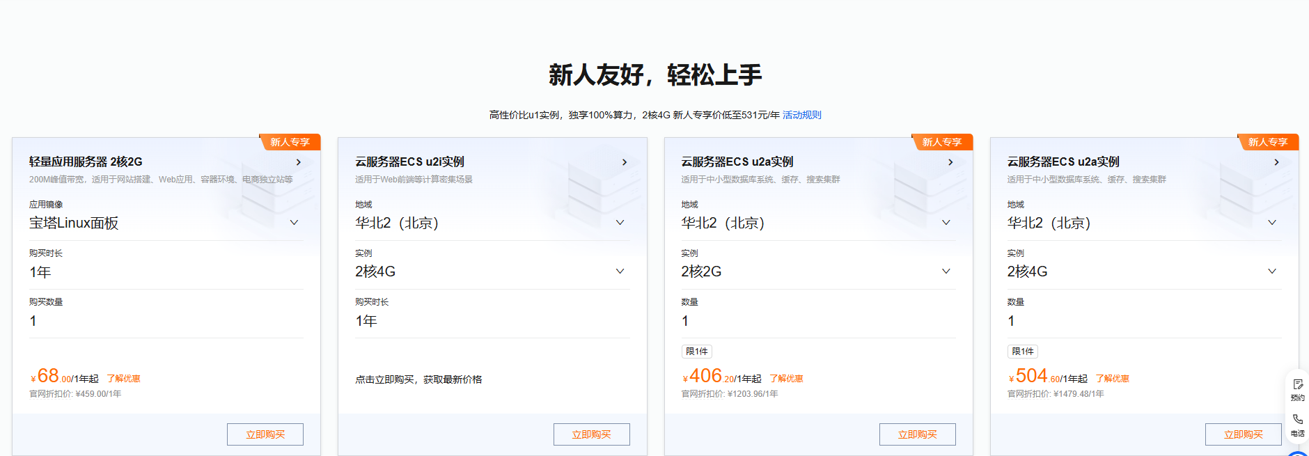 从小编接触过的众多用户反馈来看,这个配置对大多数个人用户完全够用。很多学生、个人开发者都用它搭建博客和测试环境,运行起来相当流畅。不过要特别注意:不同厂商的"2核2G"可能天差地别。比如某云服务商的经济型 e 实例,虽然标称 2 核,但采用共享型 CPU 调度模式。简单说,就是在使用高峰期,你的服务器可能要和其他用户竞争 CPU 资源,性能可能会出现波动。下面是几个知名厂商的 2 核 2G 云服务器租用规格及优惠参考: