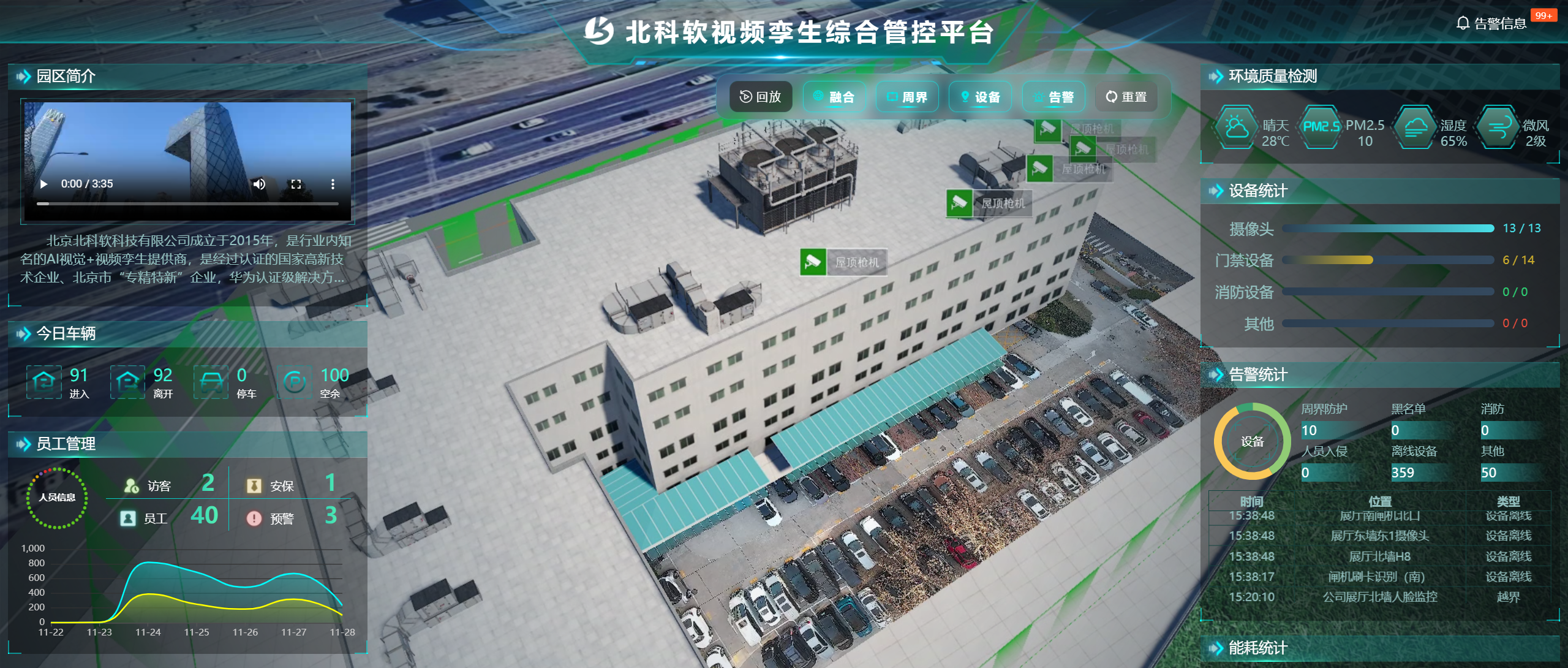 北科软将视频孪生技术引入智慧园区解决方案,为这一难题提供了答案。视频孪生不仅仅是数字孪生的升级版,它通过视频流与三维场景的深度融合,创建了一个能够实时反映物理世界变化的“活孪生”系统。