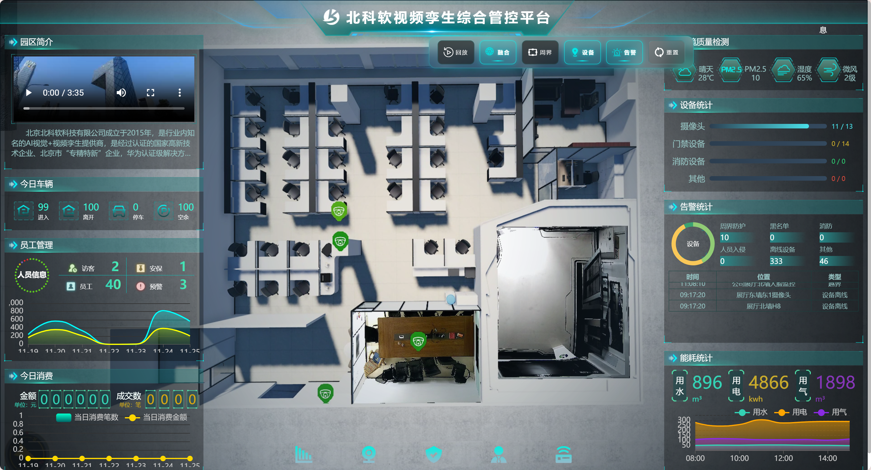 深夜,某智慧园区运营中心的大屏幕上,一个虚拟访客图标触发了围栏区域的告警系统。平台立刻显示出这位访客的完整轨迹回溯,从哪个入口进入、途径哪些区域、停留多长时间,所有信息一目了然。这不是科幻电影场景,而是北科软视频孪生技术在智慧园区中的实际应用。