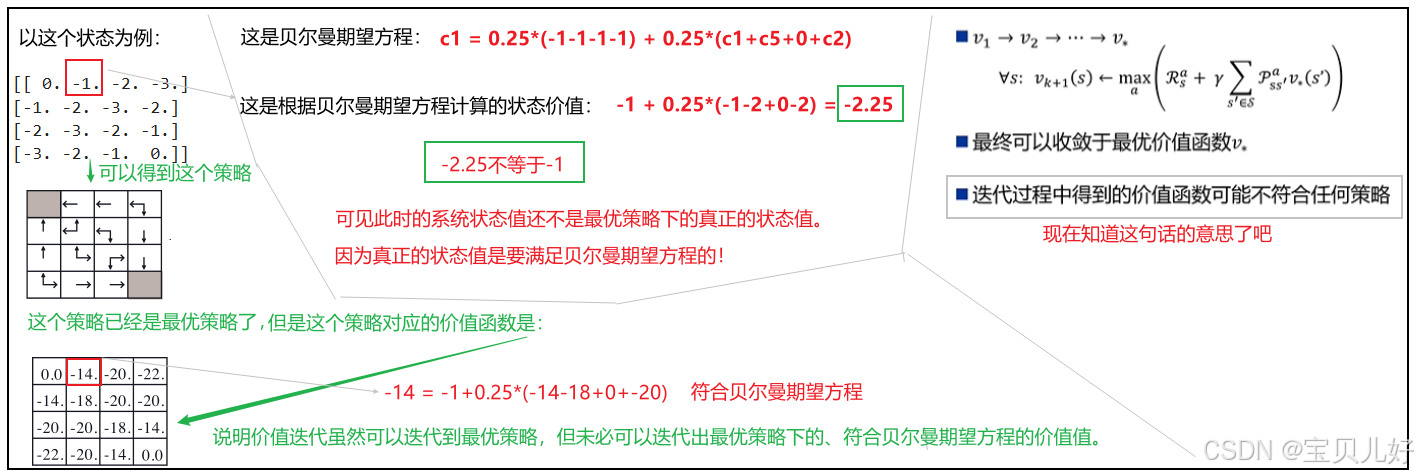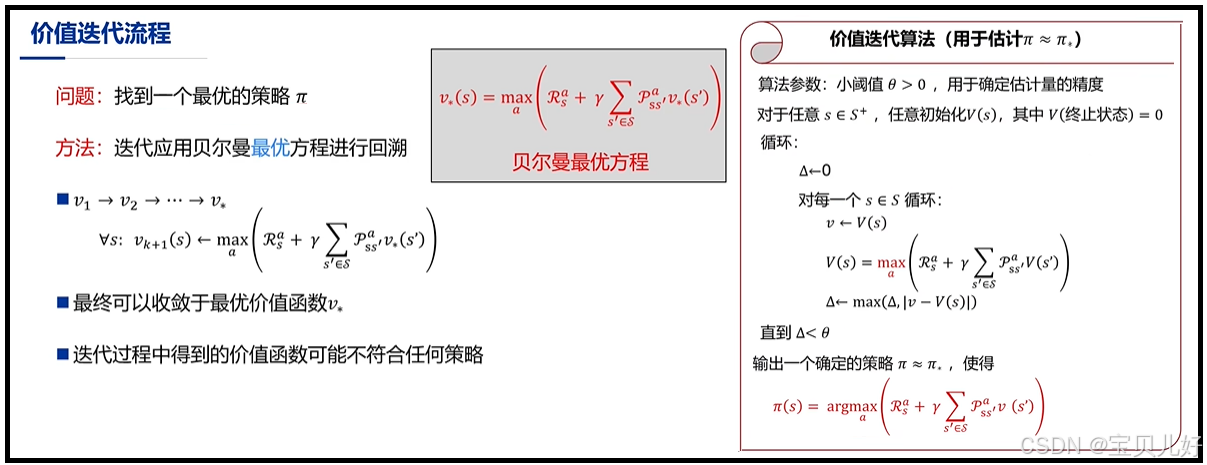 至于具体如何实现价值迭代,我这里就不重复写了,详情见第三章 https://blog.csdn.net/friday1203/article/details/155533020?spm=1001.2014.3001.5501 中的五-3:贝尔曼最优方程的求解。