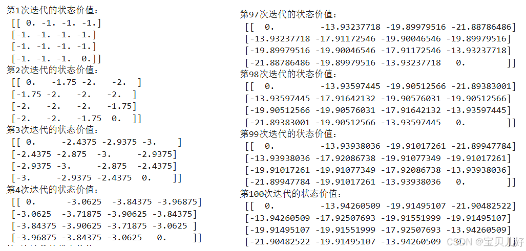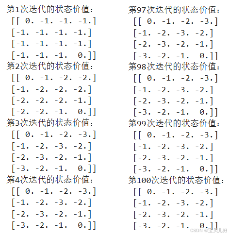 print("第{}次迭代的状态价值:\n".format(k+1),v)