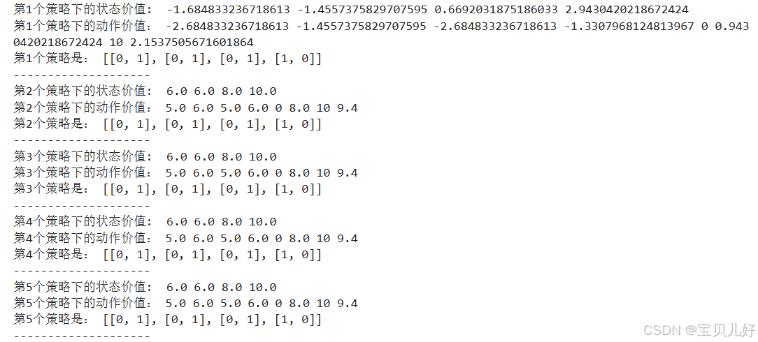 for i in range(20): #每个策略下循环20次寻找状态价值