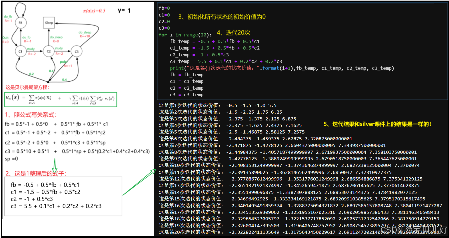 大家可以自行运行一下这个代码,结果和silver课件上的答案是一样的!