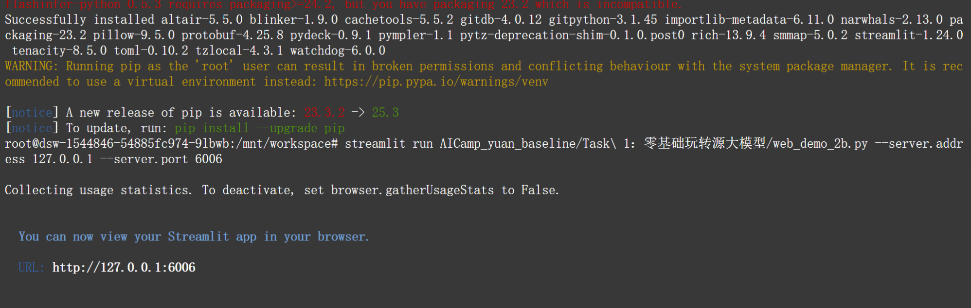 streamlit run AICamp_yuan_baseline/Task\ 1:零基础玩转源大模型/web_demo_2b.py --server.address 127.0.0.1 --server.port 6006