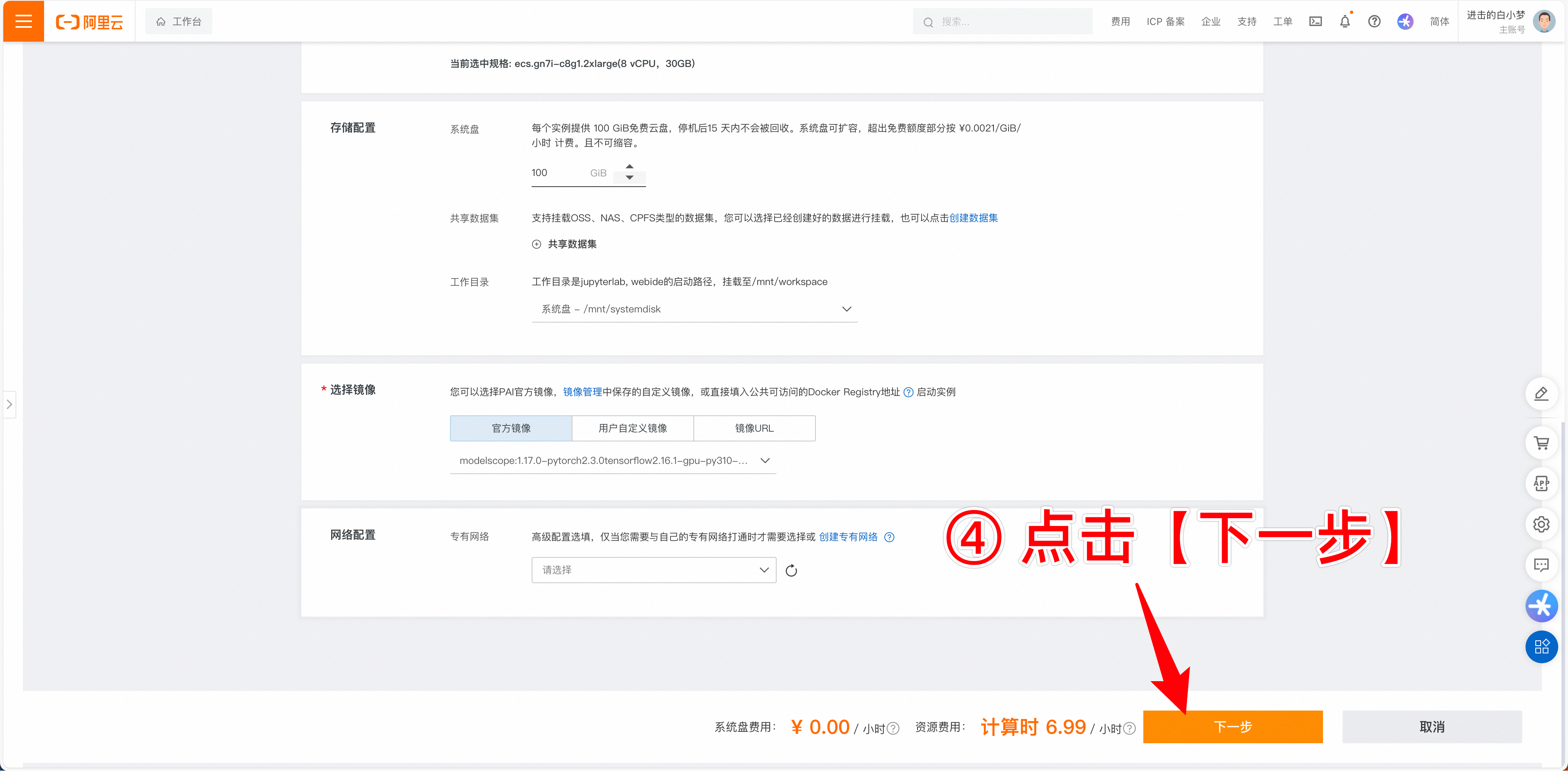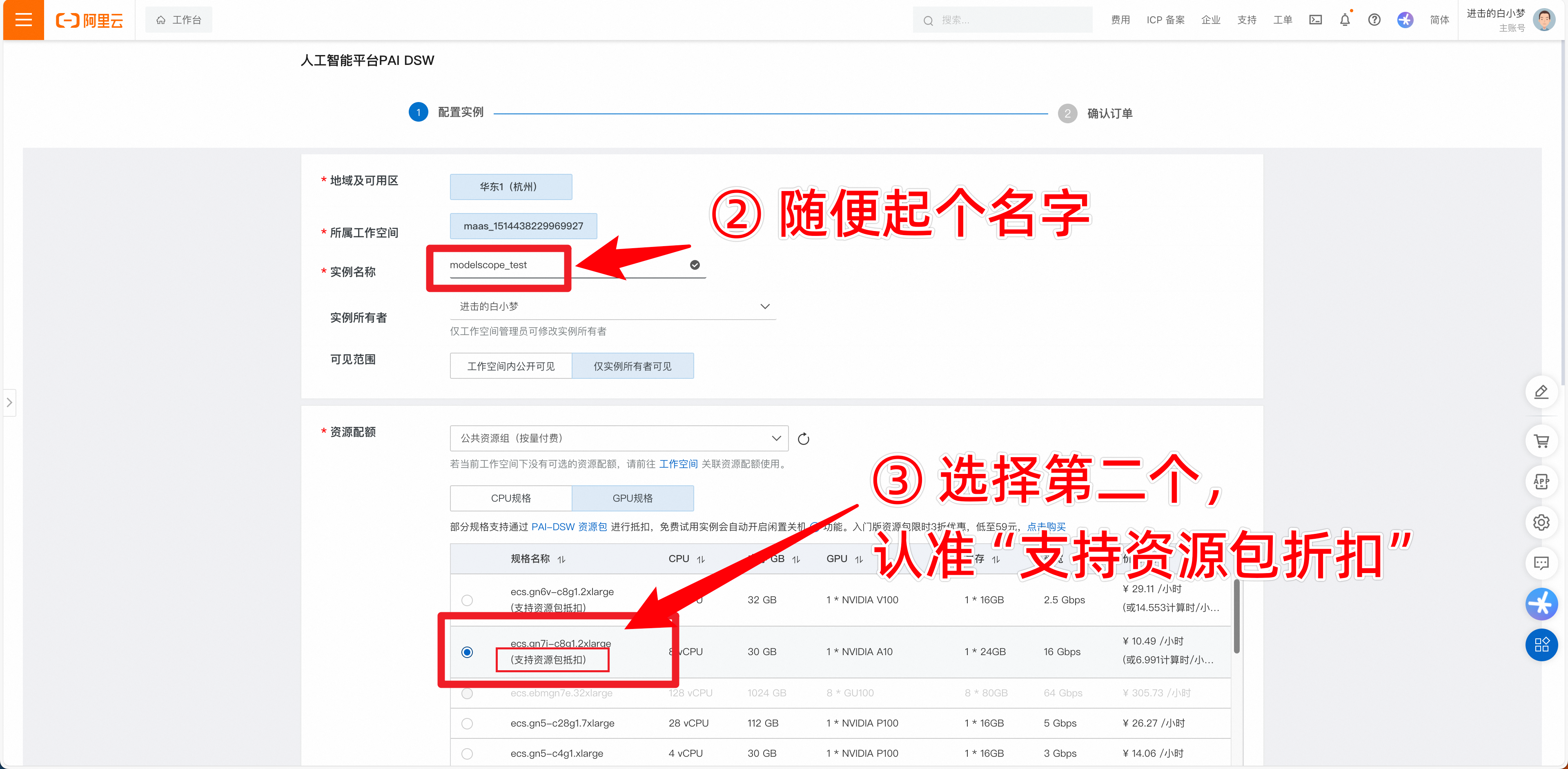 3.在魔塔社区创建PAI实例,点击下面链接。完成上图的PAI需要。