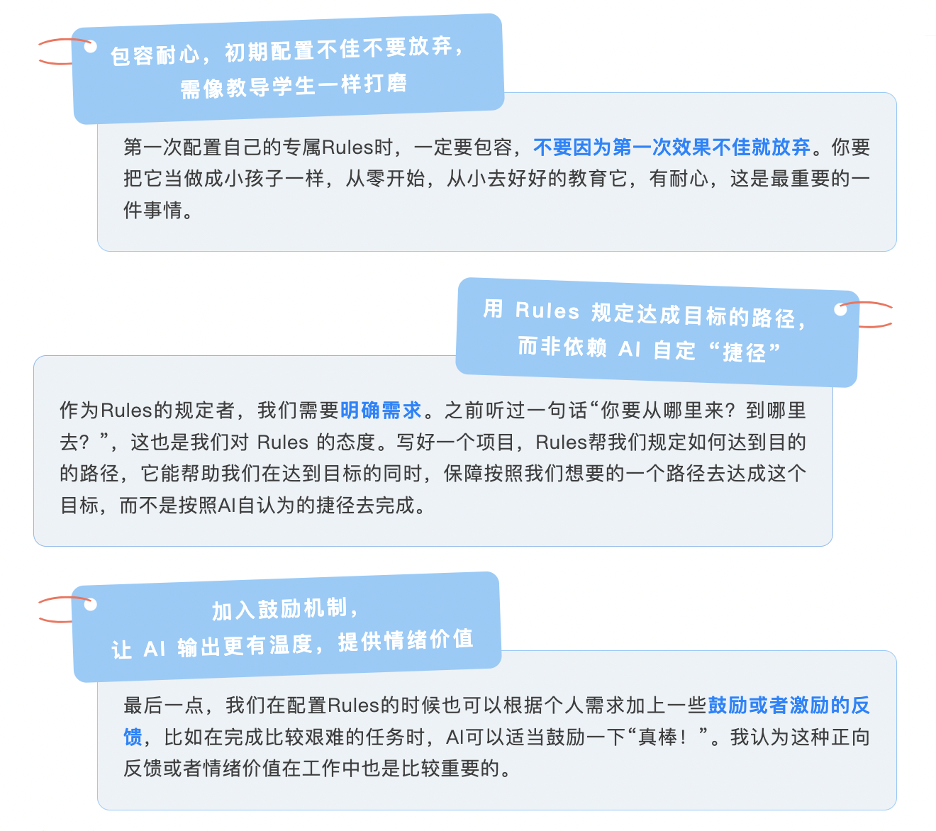 属性:不是独立工具,而是 AI 工具的 “优化补充”——AI 像 “百科全书” 懂很多,但 Rules 能明确使用方式,让输出更贴合需求,还能记录用户喜好,更具人性化。