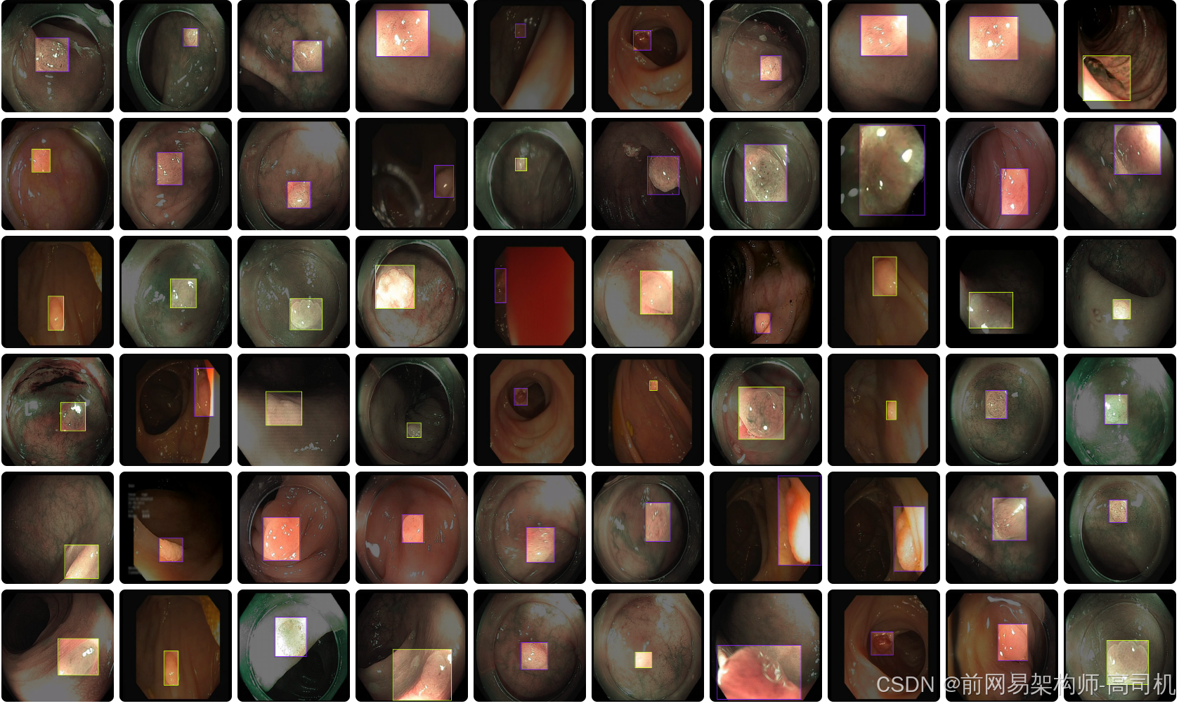 - 标注精度与分型能力:所有图片均由 3 名资深消化科医师联合标注,采用 “边界框定位 + 病理类型标注” 双维度标注模式,精准区分腺瘤性息肉与增生性息肉两类核心目标;经第三方临床验证,数据集对两类息肉的综合识别率达94.8% ,边界框标注 IoU(交并比)均值超 0.89,满足医疗 AI 算法训练的高精度需求。