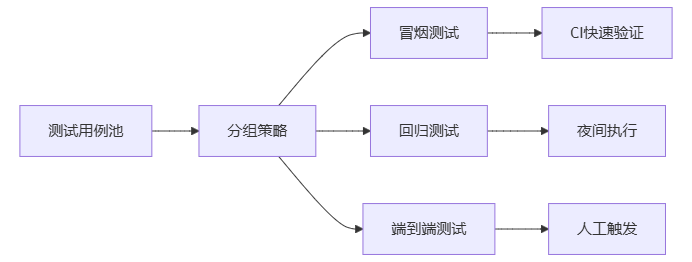 groups = "e2e"覆盖端到端流程,定期人工触发。