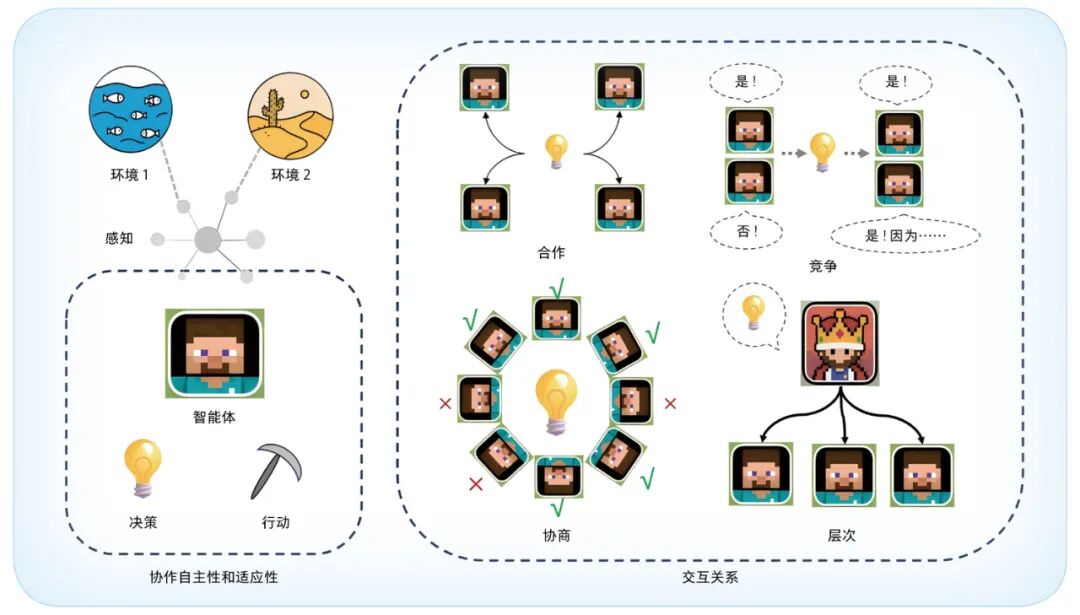多智能体协同是AI领域的一个重要研究方向,其发展经历了从单智能体到多智能体协同的过程。智能体是指能够感知环境并采取行动以实现特定目标的AI系统。多智能体协同通常指的是多个智能体之间通过信息交互与策略协调,实现复杂任务[1]。