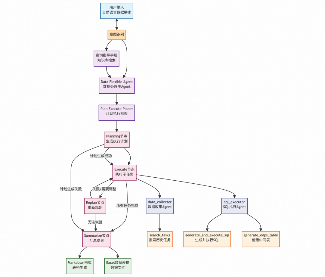- 当检测执行异常时(如SQL语法错误/数据缺失),触发Replan节点进行重新规划。