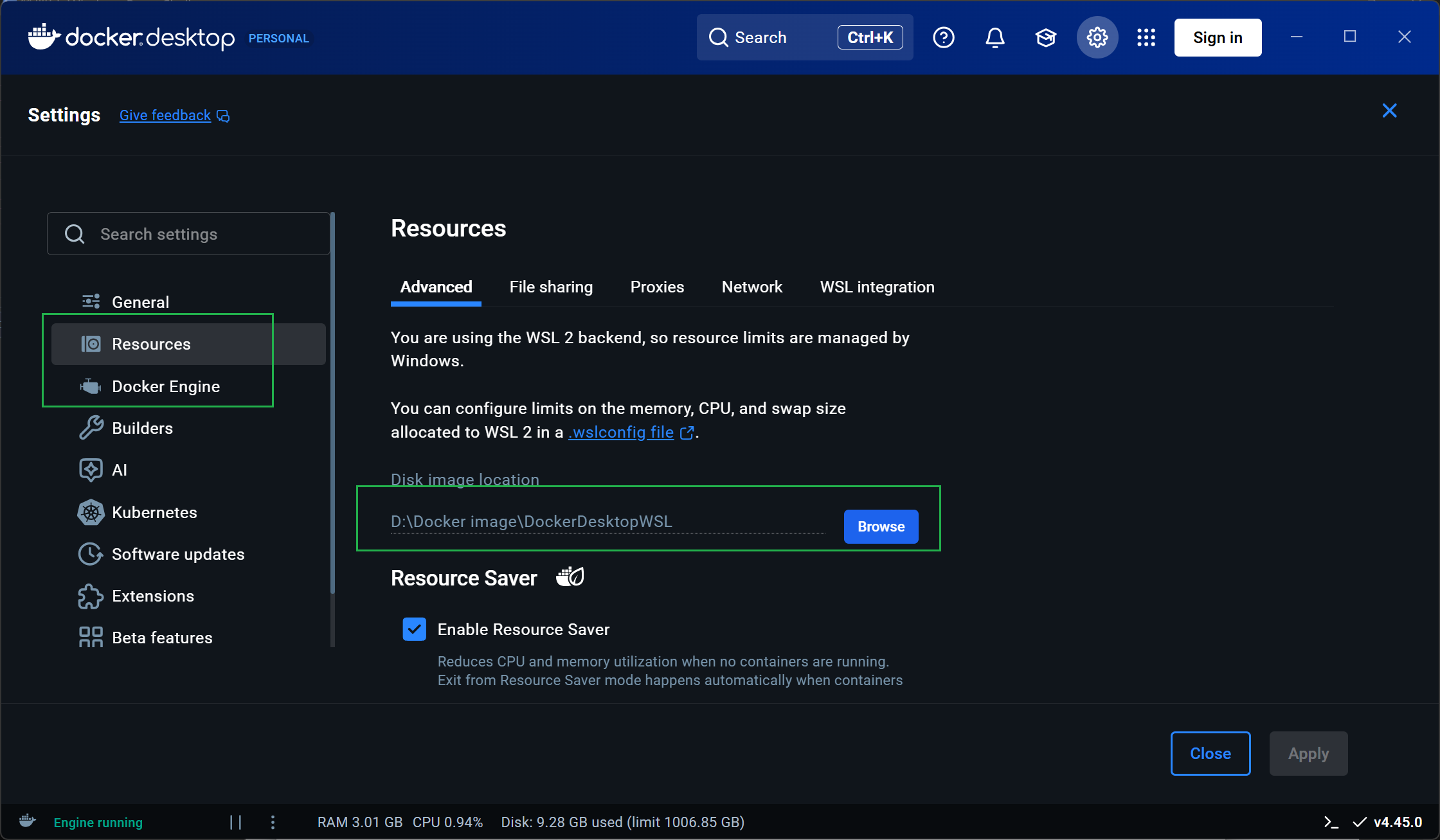 Resourses:设置 Docker 磁盘镜像的存储位置为D盘