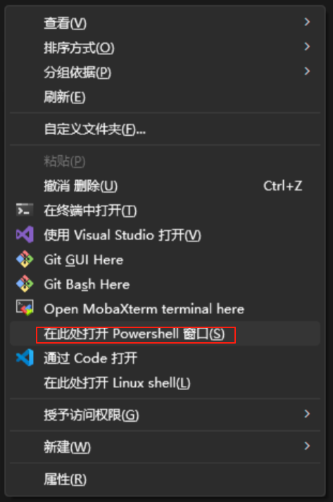按下shift按键点击右键,在此处打开powershell,或者在文件资源管理器的搜索栏输入powershell