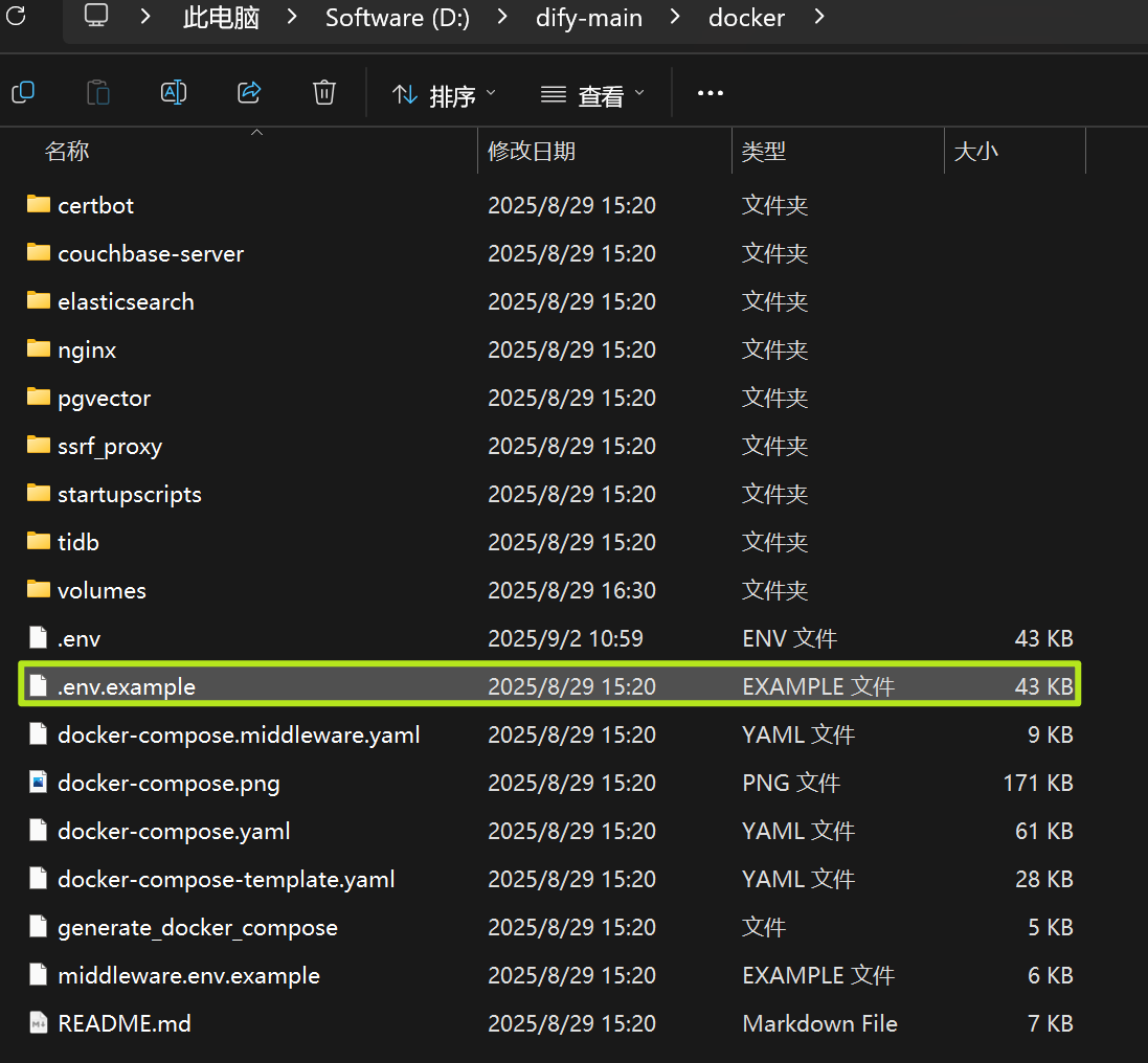 打开 dify文件夹 -> docker 文件夹