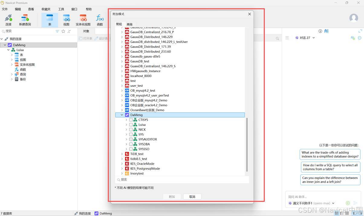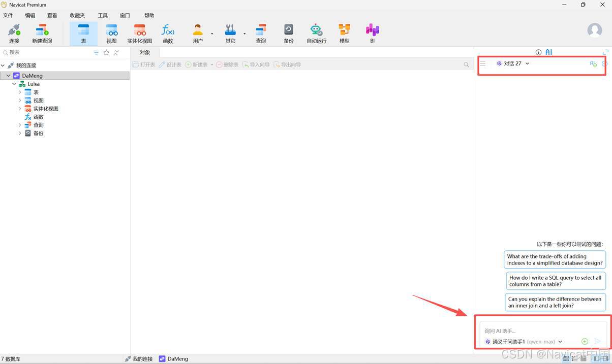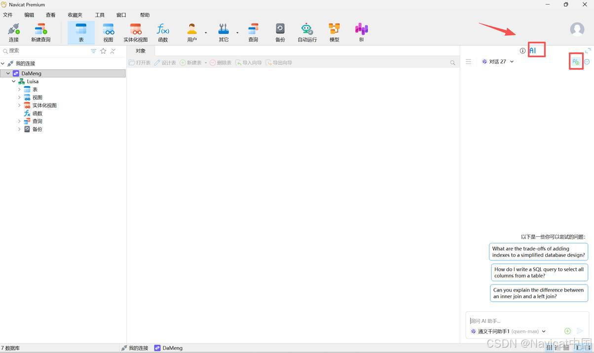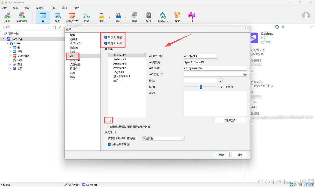 Navicat x 达梦技术指引 | 启用和配置AI助手