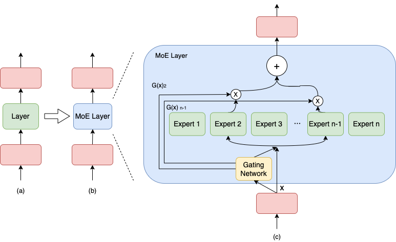 MoE 有 3 个专家:E1, E2, E3(即 N=3),一个批次 B 有 4 个样本:x1, x2, x3, x4: