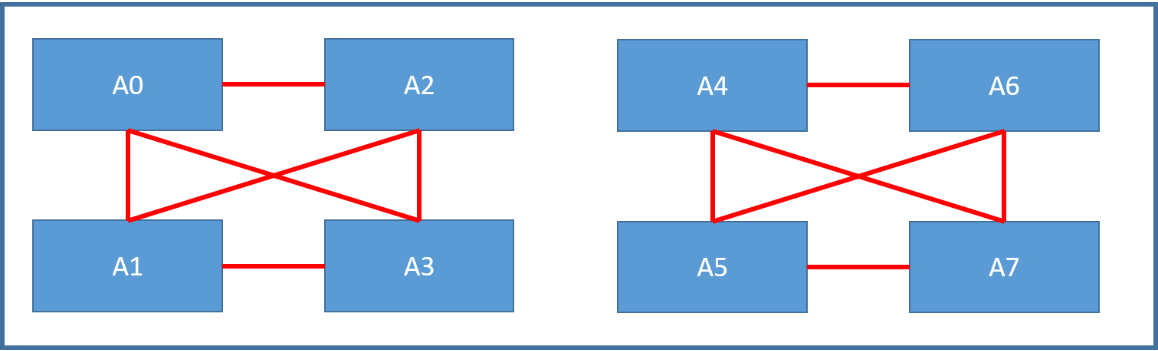 - 编号0-3的处理器处于一个链路,编号4-7的处理器处于另外一个链路。