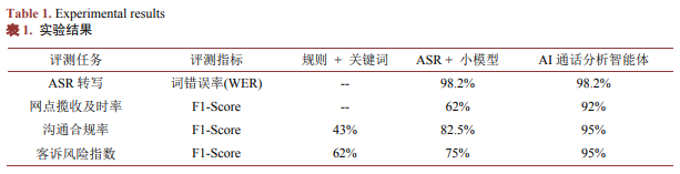 (2) 基线对比方案:1) 规则 + 关键词:模拟传统质检系统。采用ASR转写后,使用预定义的关键词(如“投诉”、“签收”)进行硬匹配。2) ASR + 小模型:模拟主流AI质检方案。采用ASR转写后,使用独立的、基于BERT的NLU模型分别进行意图识别和情感分析。