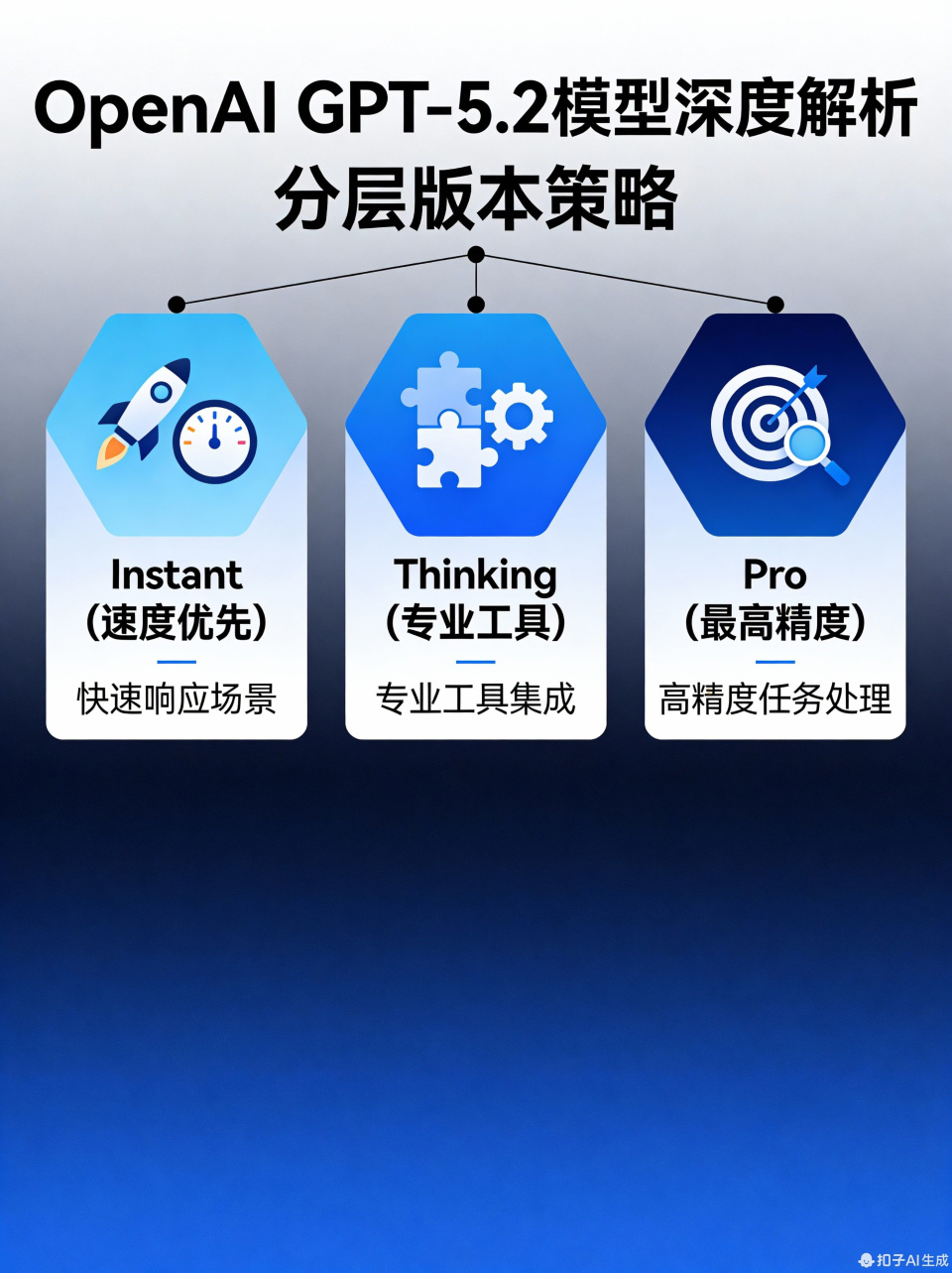 OpenAI 为 GPT - 5.2 推出 Instant、Thinking 和 Pro 三个版本,采用“定位—能力—适用场景”分层框架,平衡速度、推理深度与成本,优化用户效率与总体拥有成本。