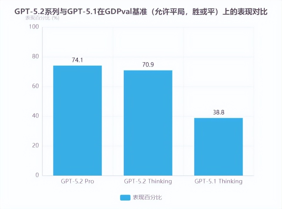 GPT-5.2 对知识工作效率产生颠覆性提升,在评估 44 个职业知识型任务的 GDPval 测试中,该模型成为首个总体表现达到或超过人类专家水平的 AI 模型,70.9% 的任务表现与行业专家持平或胜出,且完成速度是人类专家的 11 倍以上,综合成本不足专家的 1%,显著优化企业运营成本。