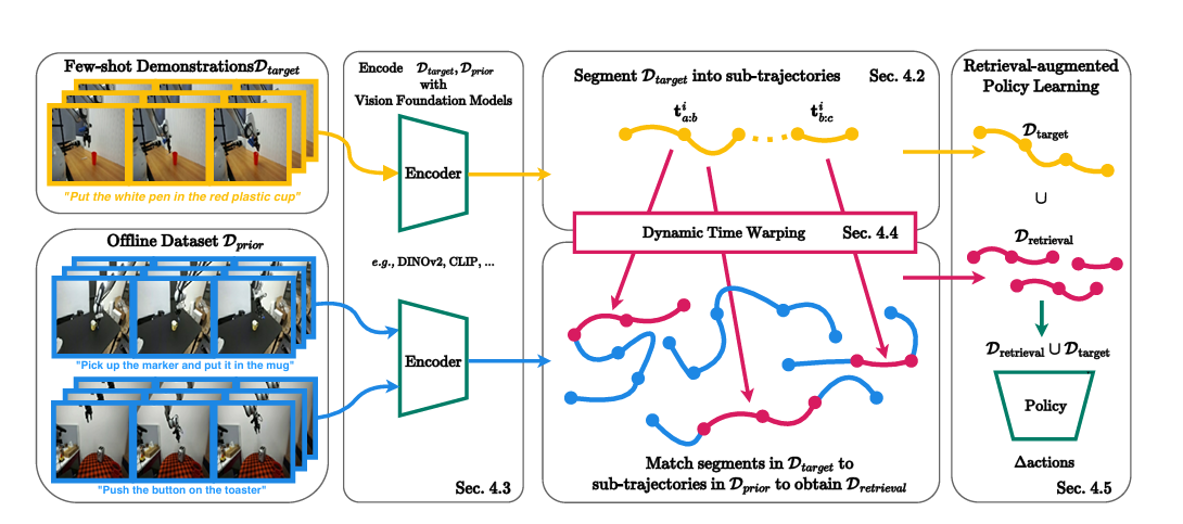 就在这样的技术困局中,华盛顿大学与博世人工智能中心联合提出的STRAP(Sub-sequence Trajectory Retrieval for Augmented Policy Learning)框架横空出世,以“子轨迹检索”为核心创新点,构建了一套从数据利用到政策训练的完整解决方案。