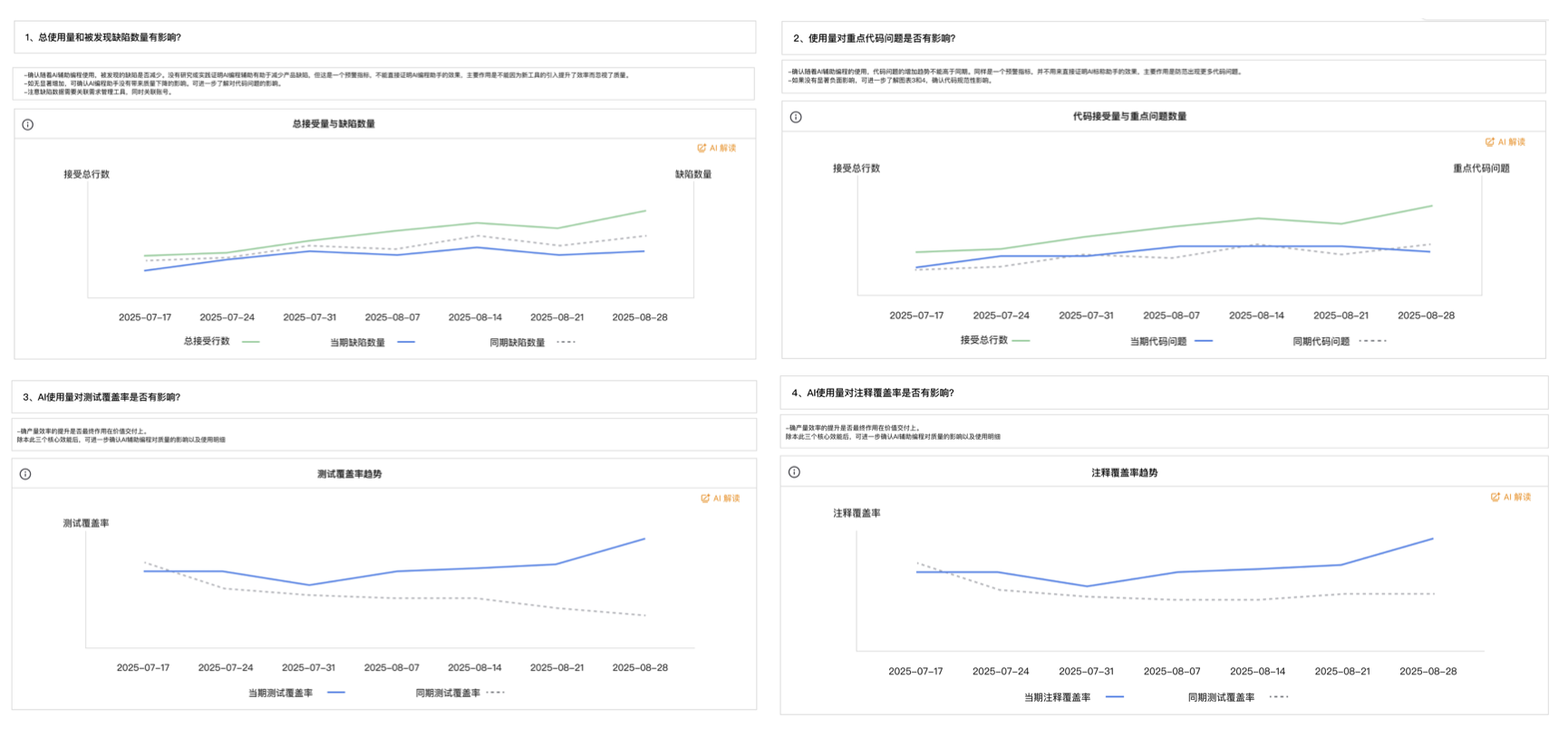 增强提效可信度:借助历史数据验证提效的真实性,进一步增强提效与 AI 的关联性和可信度。