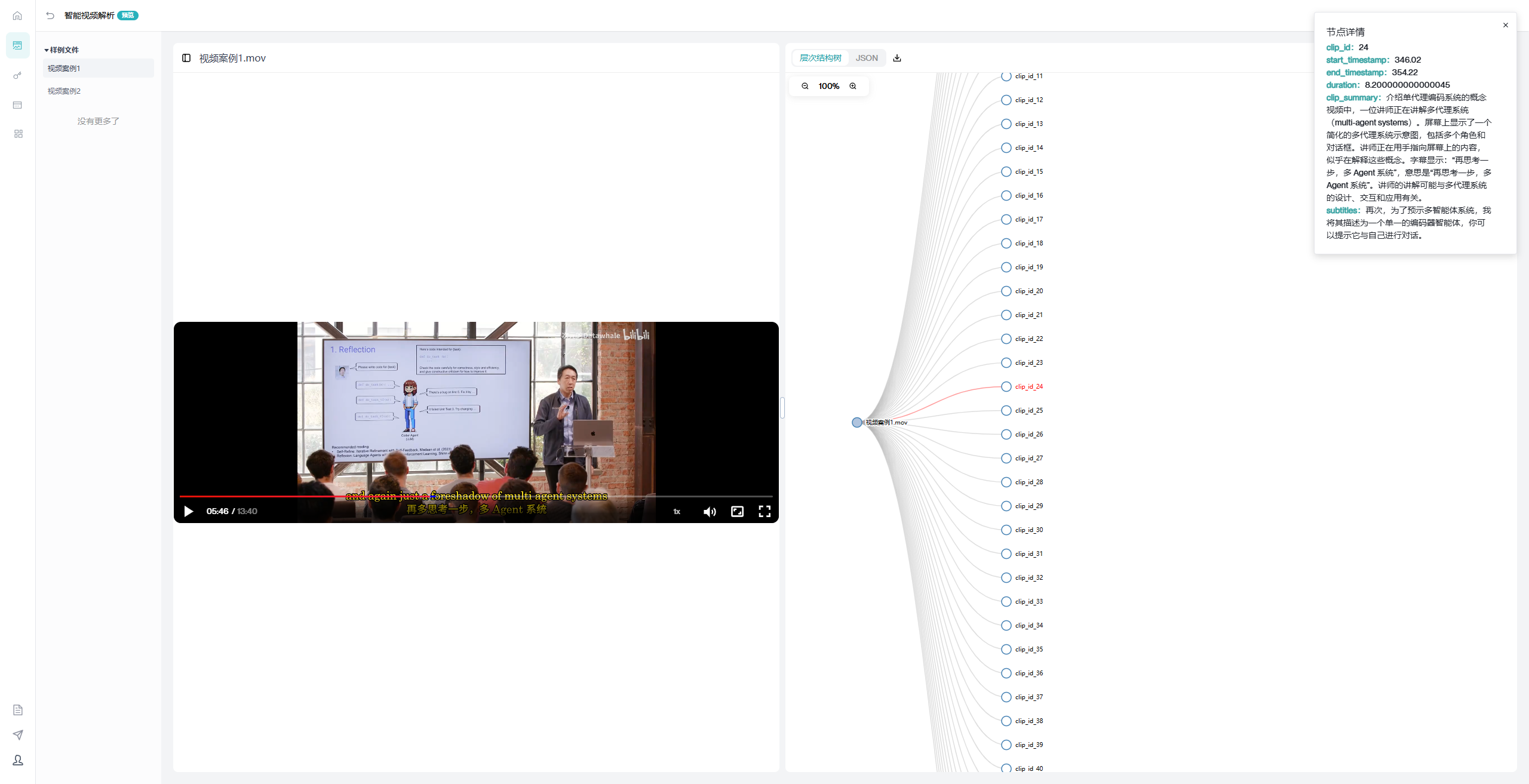 无论是企业会议录像、在线教学视频、新闻播报片段,还是短视频、纪录片、行业研讨会实录,只需上传视频文件(支持主流格式),系统即可通过自主研发的音视频同步解析算法、场景语义识别模型,自动解析视频内容,精准提取其中的文字信息(字幕、画面文字)、关键数据(图表、报表内容)、人物对话、场景关键词、核心观点等核心要素,快速转化标准化数据赋能大模型及应用,让AI读得懂视频内容。