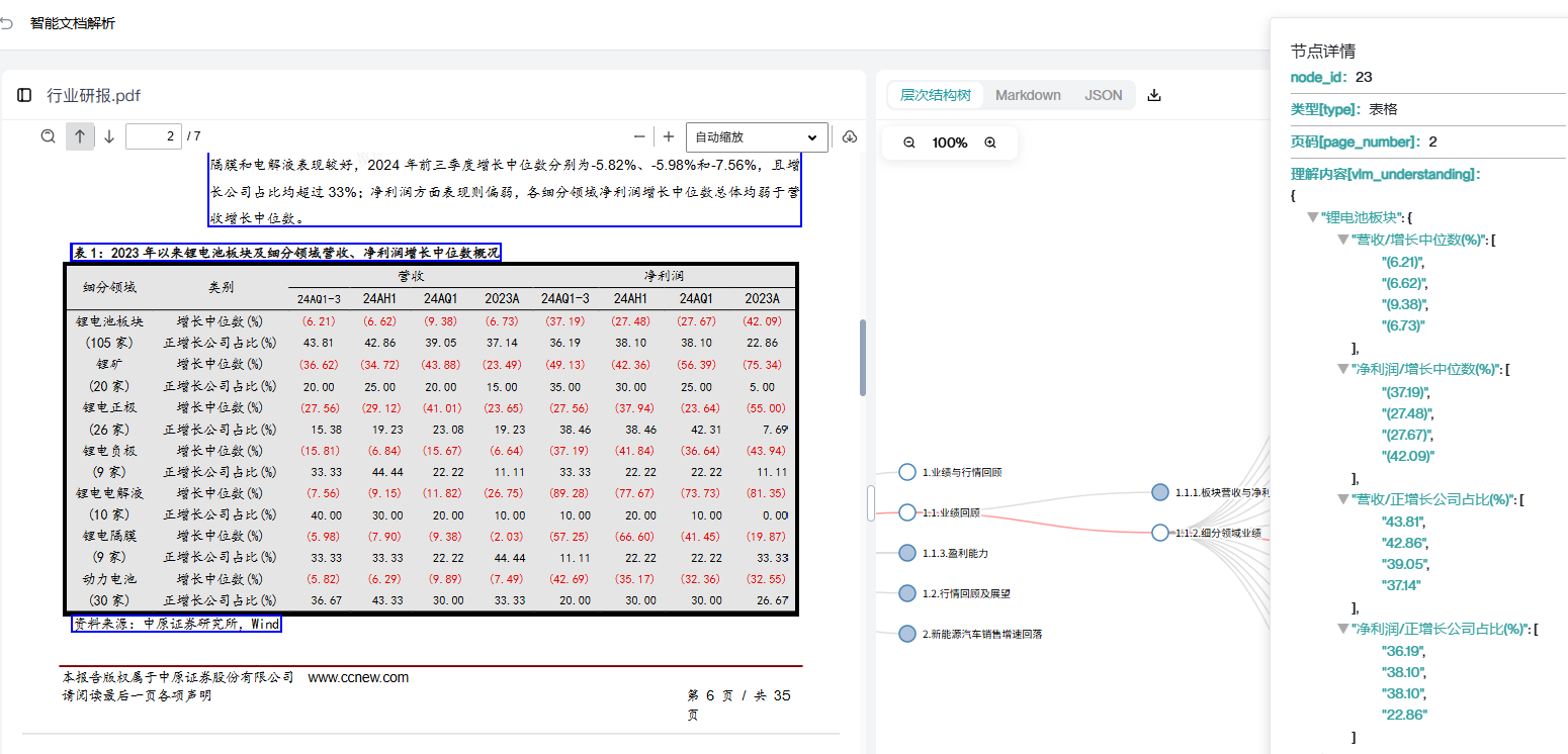 - 实现文档中文字、表格、图表信息的跨元素关联建模,打破数据孤岛,让文档信息解读更具完整性与逻辑性。