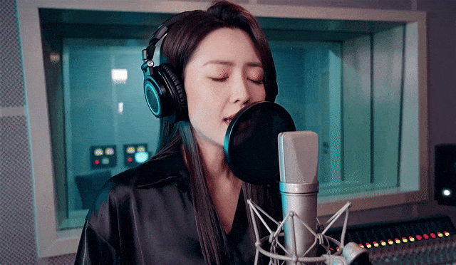 Prompt:asmr creator typing on a noisy keyboard and then looking up and blowing into the microphone as she talks