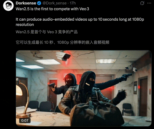 万相2.5一亮相,就被不少玩家称为「Veo 3的真正对手」。