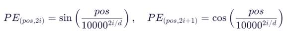 - 其中 pos 是位置,i 是维度索引,d 是向量维度。