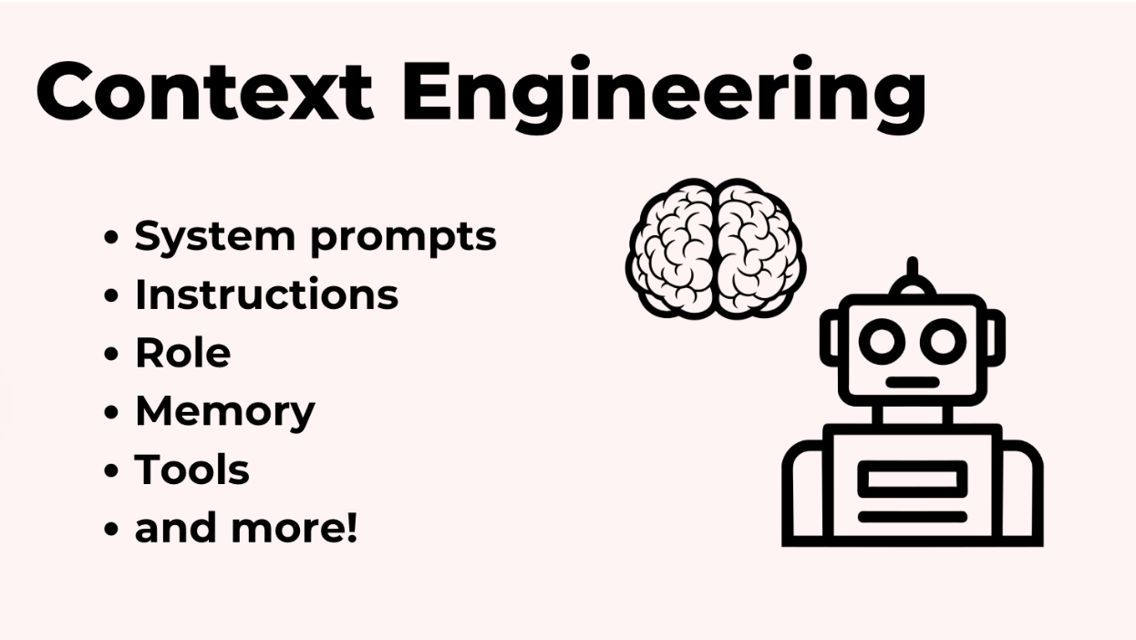 这就是所谓的“上下文工程”,即你决定代理拥有哪些信息。这包括任务背景、代理的角色、过去行动的记忆以及可用工具等内容。