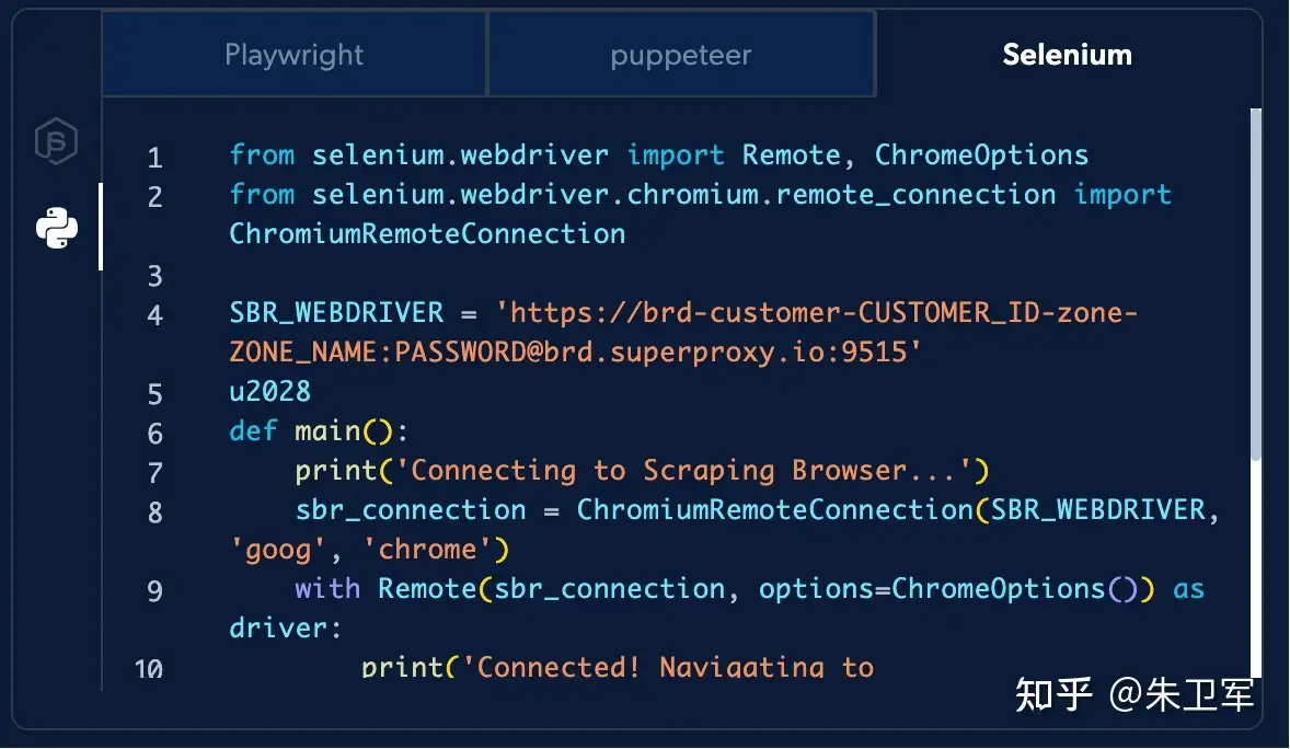 如果是技术小白,不会写上面提到的那些规避措施代码,就可以尝试用亮数据的这样的采集api,它把各种规避检测的技术、IP代理池都封装到一个接口里,还提供专门的云上浏览器,用selenium接入,和普通浏览器一样,有头无头都支持,但不需要再写各种反爬措施之类的脚本,比较简单直接。