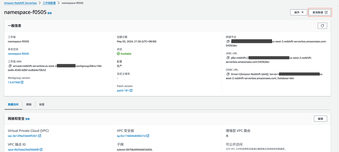 <font style="background-color:rgb(187,191,196);">dbt debug</font> 命令会检查您的配置是否正确,并尝试连接到 Redshift Serverless 端点。如果连接失败,请检查 <font style="background-color:rgb(187,191,196);">profiles.yml</font> 文件的内容是否完整,并确保网络设置(如安全组)允许访问 Redshift。