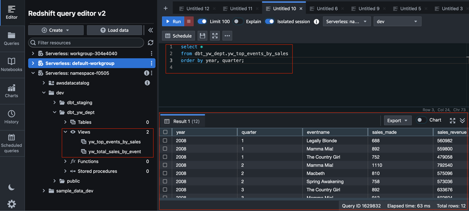 一旦文件同步完成,MWAA将自动发现新的DAG文件。登录MWAA的Airflow UI,即可看到名为dbt_dag的DAG。用户可以在Airflow UI中手动触发dbt_dag的运行,或等待其按计划自动执行。工作流运行成功后,dbt任务将在Amazon Redshift中执行数据转换和物化操作。通过登录Redshift Query Editor v2,检查之前定义的视图和表是否已更新,并且数据是否已成功生成,即可验证整个数据处理工作流已成功自动化运行。