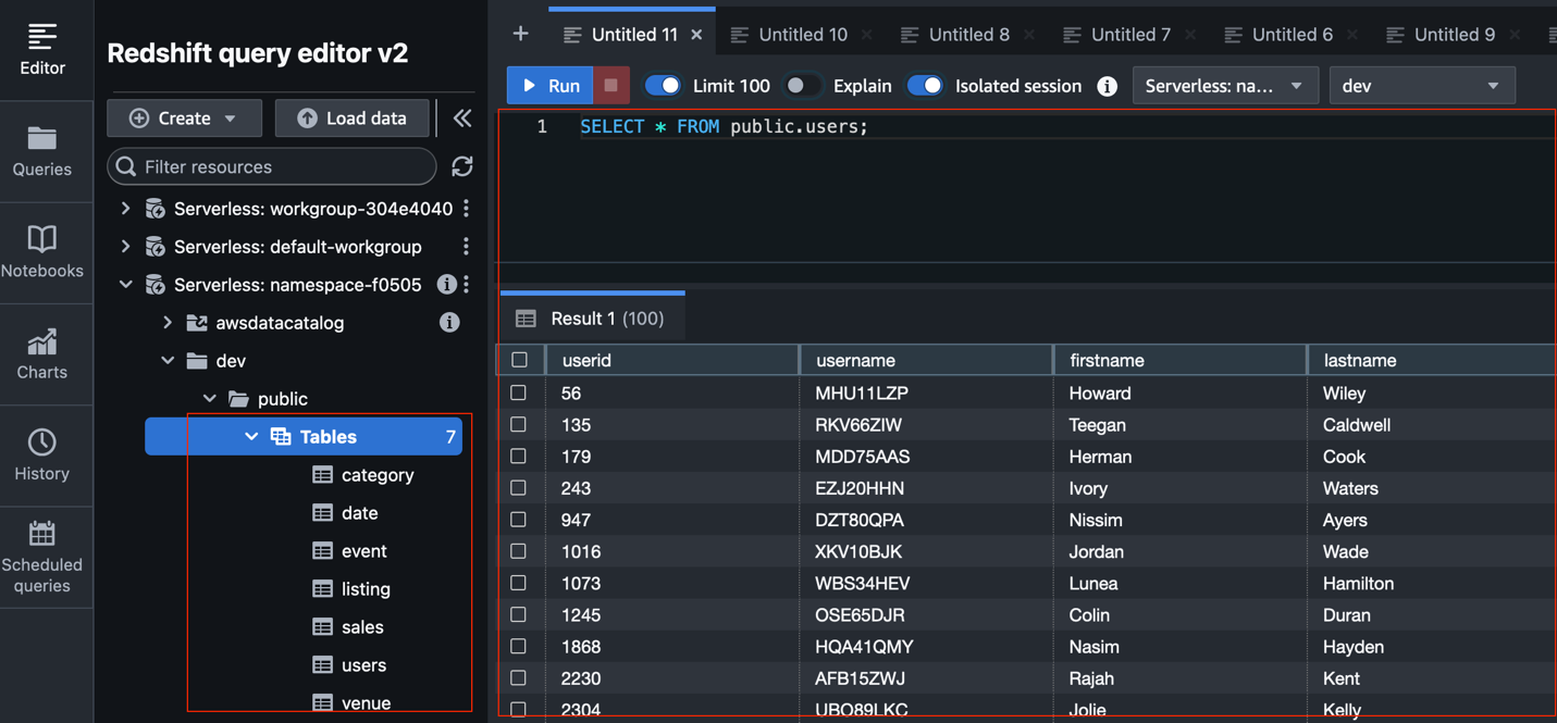为了演示数据处理过程,我们将使用示例数据。这些数据首先存储在Amazon S3中,然后通过Redshift的COPY命令高效地加载到Redshift数据仓库中。例如,通过执行COPY public.users FROM 's3://your-s3-bucket/path/to/users.csv' IAM_ROLE 'arn:aws:iam::your-account-id:role/your-redshift-iam-role' CSV;命令,即可将S3中的数据导入Redshift。数据加载完成后,可以通过简单的SQL查询验证数据是否已成功导入。