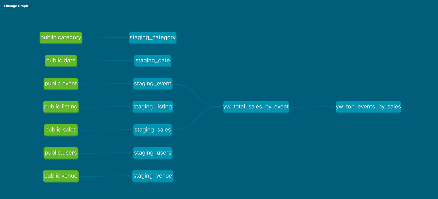 通过 dbt 文档,可以看到表级别血缘图,满足客户对数据分析中血缘关系的需求。
