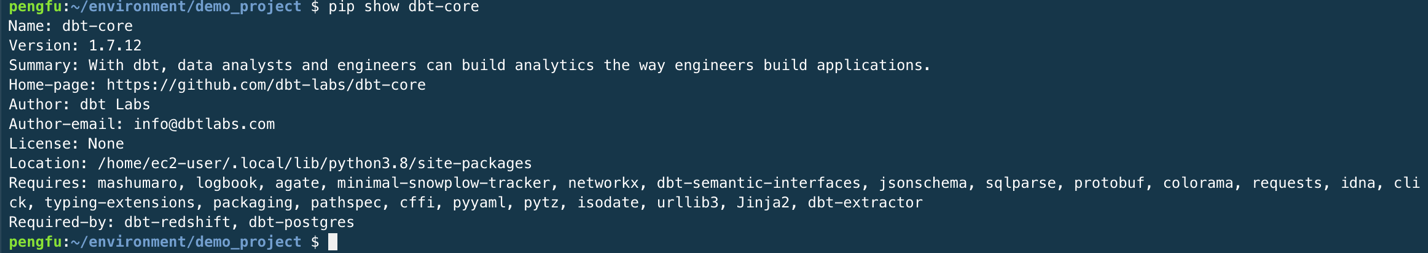 安装完成后,您可以通过以下命令检查 dbt 的安装状态: