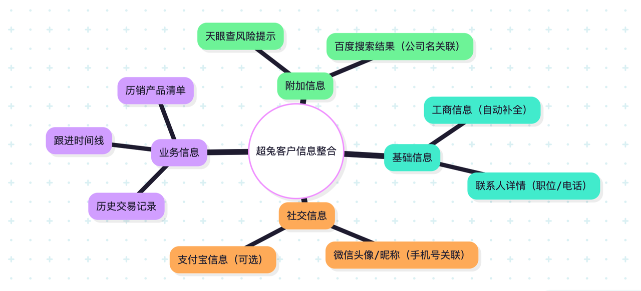 超兔的客户信息整合逻辑可通过脑图展示核心维度: