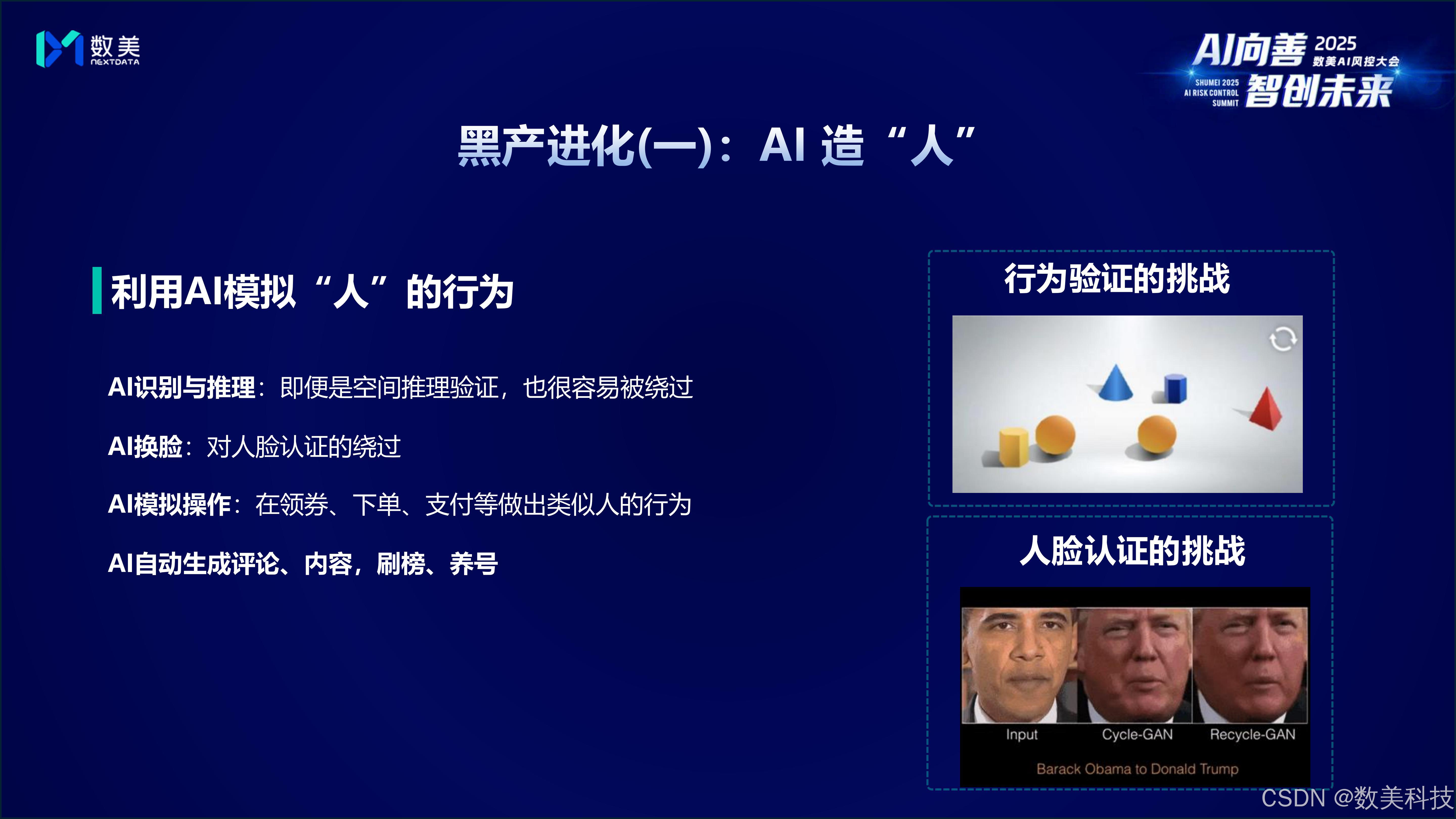 这些变化意味着,依赖于单一生物特征或行为特征的验证方式正在失效。攻击者不再需要高深的技术,AI 工具的普及让复杂的攻击“一键生成”,攻击的隐蔽性和对抗性呈指数级增长。