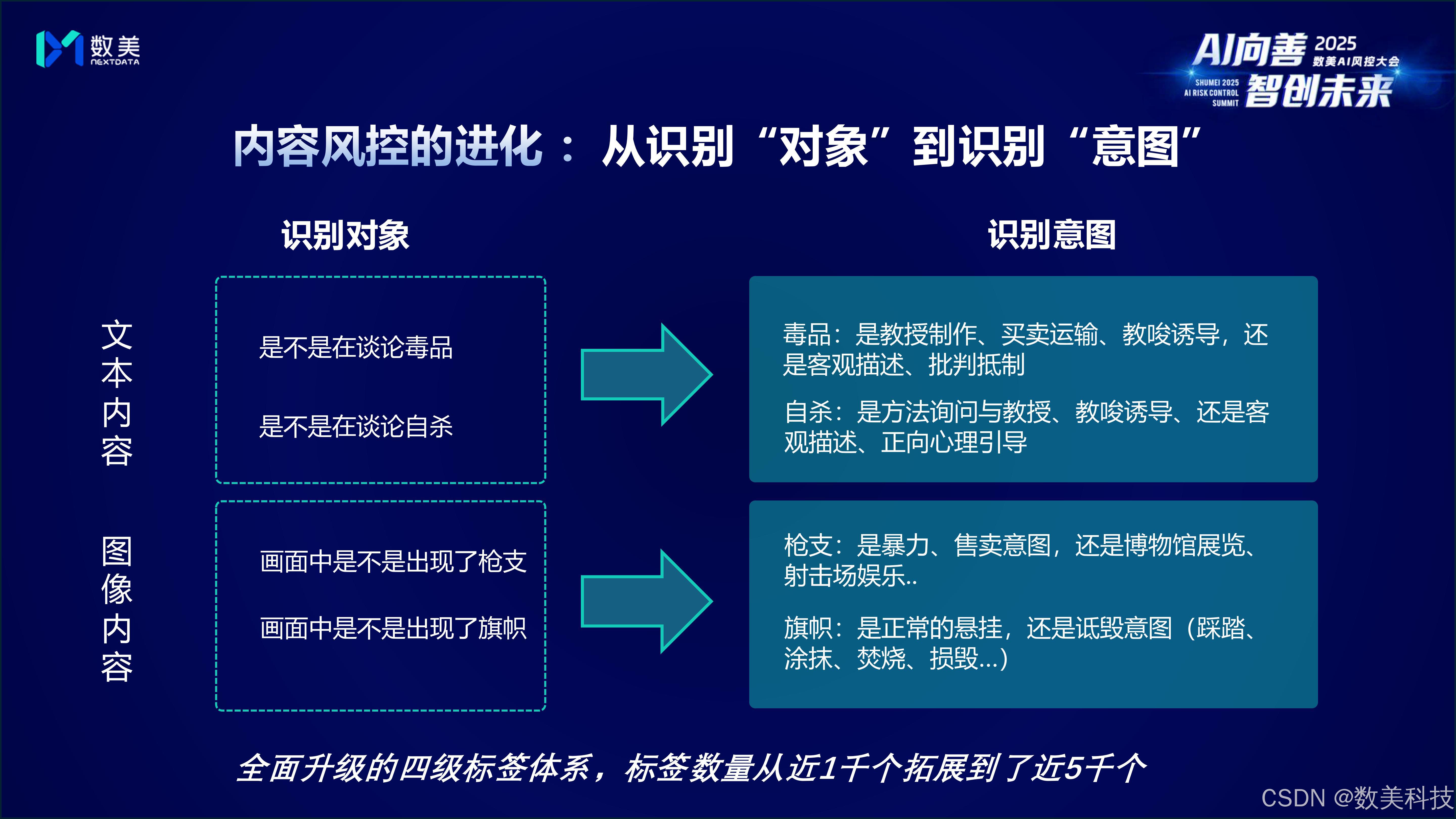 为此,数美将其标签体系从近 1000 个扩展到近 5000 个,以支撑对复杂意图的精准识别。