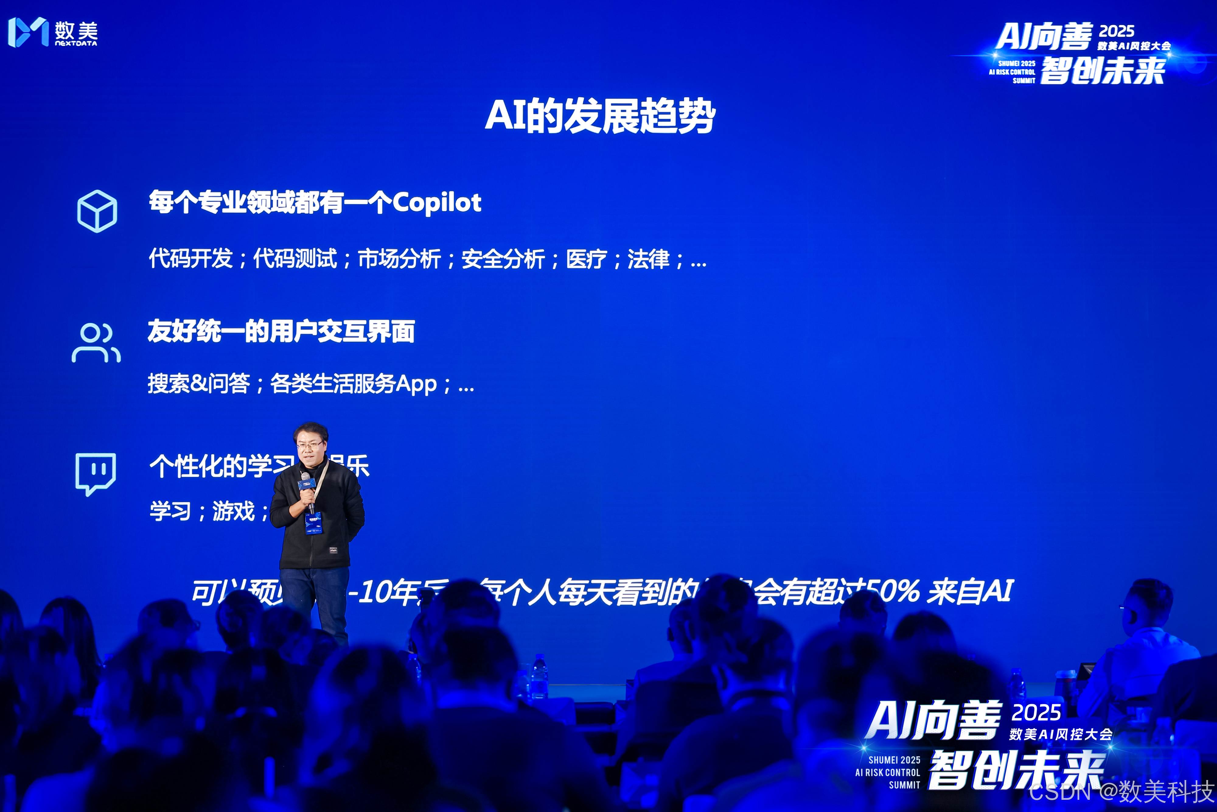在 12 月 11 日召开的数美 2025 AI 风控大会上数美科技 CTO 梁堃给出了一个极具警示意义的预测:未来五到十年,人类每天接触的信息将有超过一半来自AI。