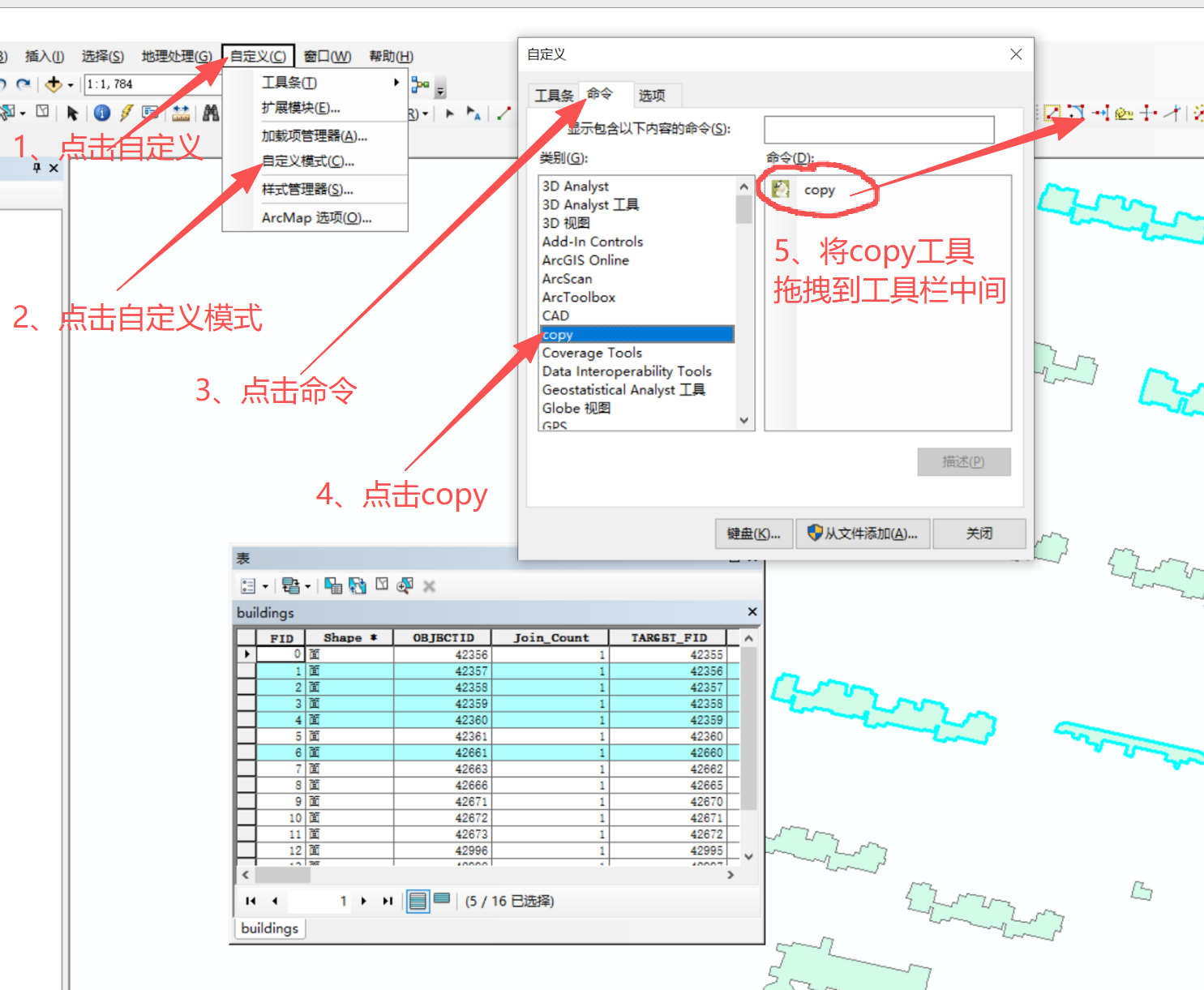 - 回到 ArcMap 主界面,点击工具栏上的 复制按钮(copy)。