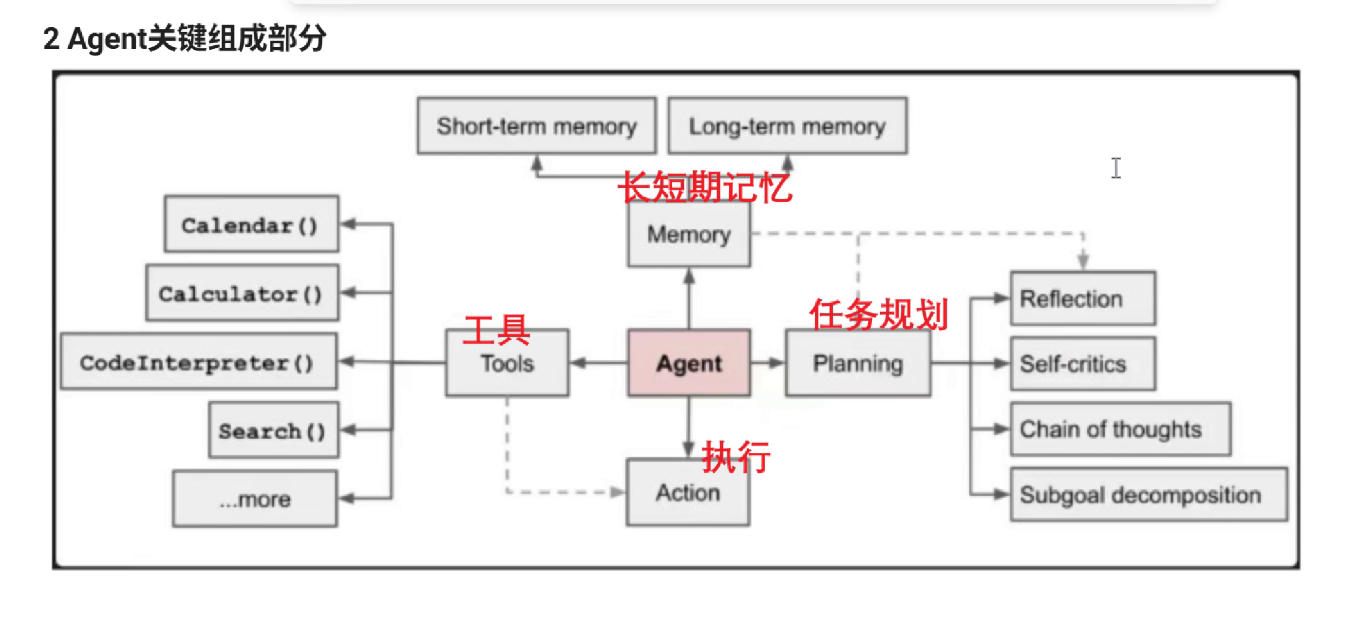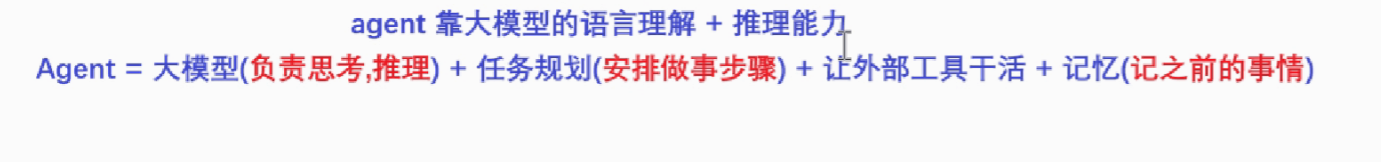 从大模型方向理解:agent基于大模型理解和推理能力,让大模型拥有解决复杂问题的规划能力.并调用外部工具来执行各种任务,利用向量数据库保留之前的记忆的智能体.