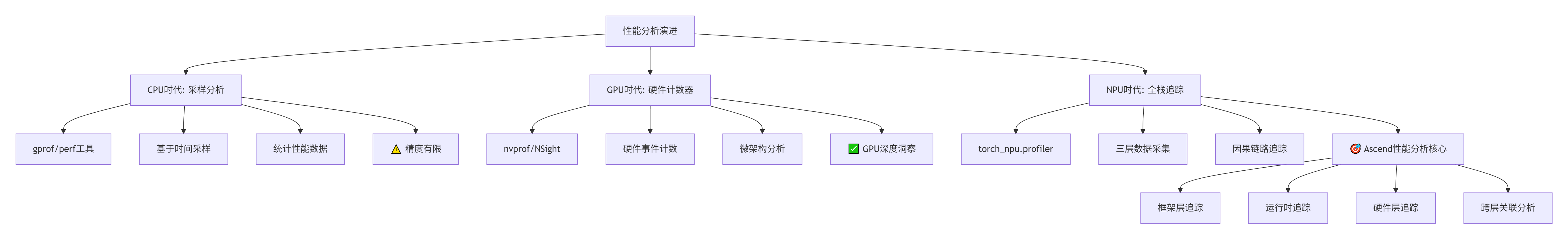 在我的异构计算开发经历中,我见证了性能分析工具的三次革命:从CPU的gprof采样分析到GPU的nvprof硬件计数器,再到昇腾NPU的torch_npu.profiler全栈追踪。torch_npu.profiler最革命性的设计在于:将PyTorch框架层、CANN运行时、NPU硬件层的性能数据统一整合,实现了真正意义上的全栈可观测。