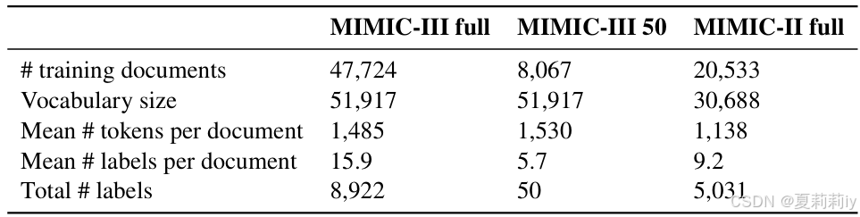 ③数据集:MIMIC III full,MIMIC III 50,MIMIC II: