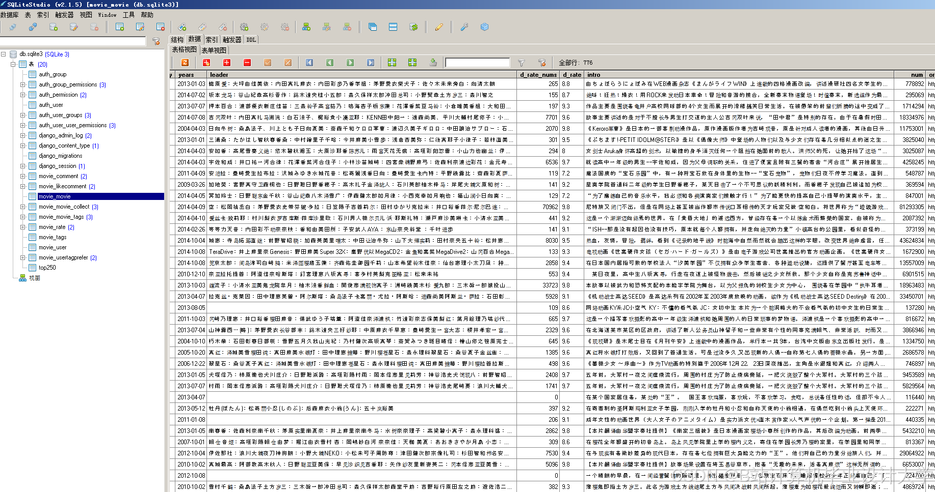 - 动漫信息表(MySQL):包含作品ID、标题、类型、作者、更新状态、评分等