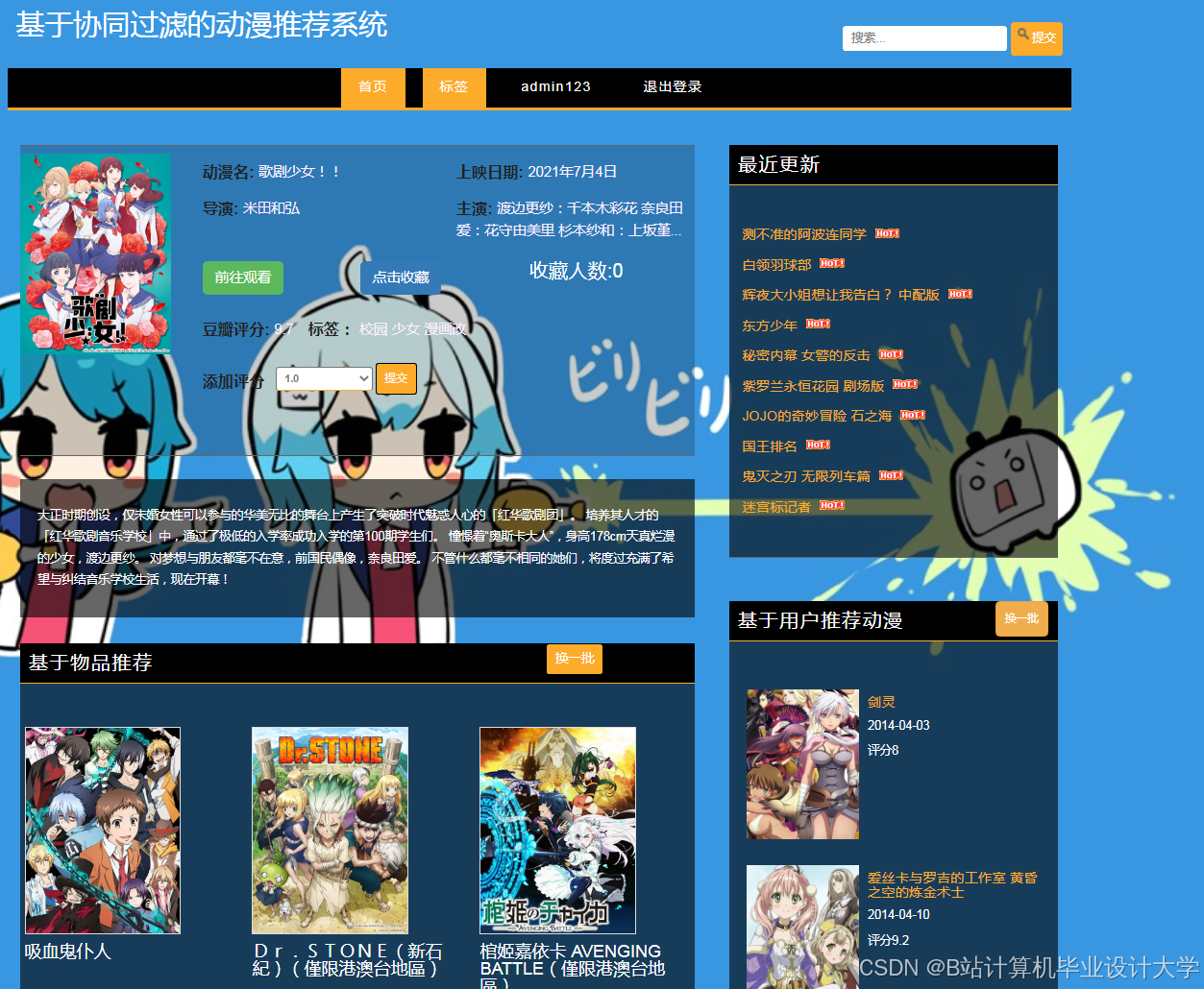 计算机毕业设计Python动漫推荐系统 漫画推荐系统 动漫视频推荐系统 机器学习 bilibili动漫爬虫 数据可视化 数据分析 大数据毕业设计
