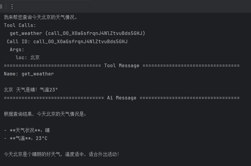 - 查看执行结果: 运行代码后,可以看到智能体成功返回了符合预定结构的数据